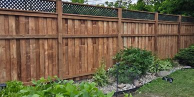 A wood fence's height is not legally allowed to be higher that 6' tall of vertical board construction in Cornwall and surrounding areas. However, a fences height can be legally increased by up to 2' of lattice for some additional privacy and security. Most commonly, 1' of lattice is added to a fence, for a total height of 7' tall. Traditional lattice, square lattice or vinyl lattice are common types of fence toppers. When installing lattice on top of a 6' fence, 5"x5" posts are always recommended, and the post length will need to be changes from 10' long to 12' long.